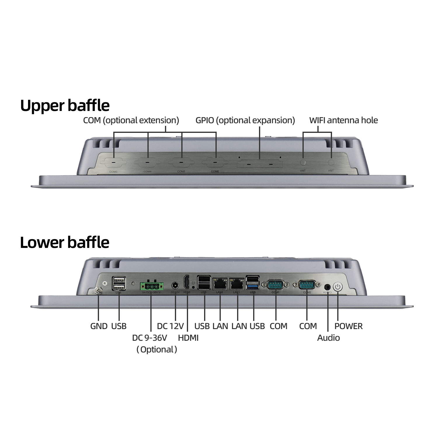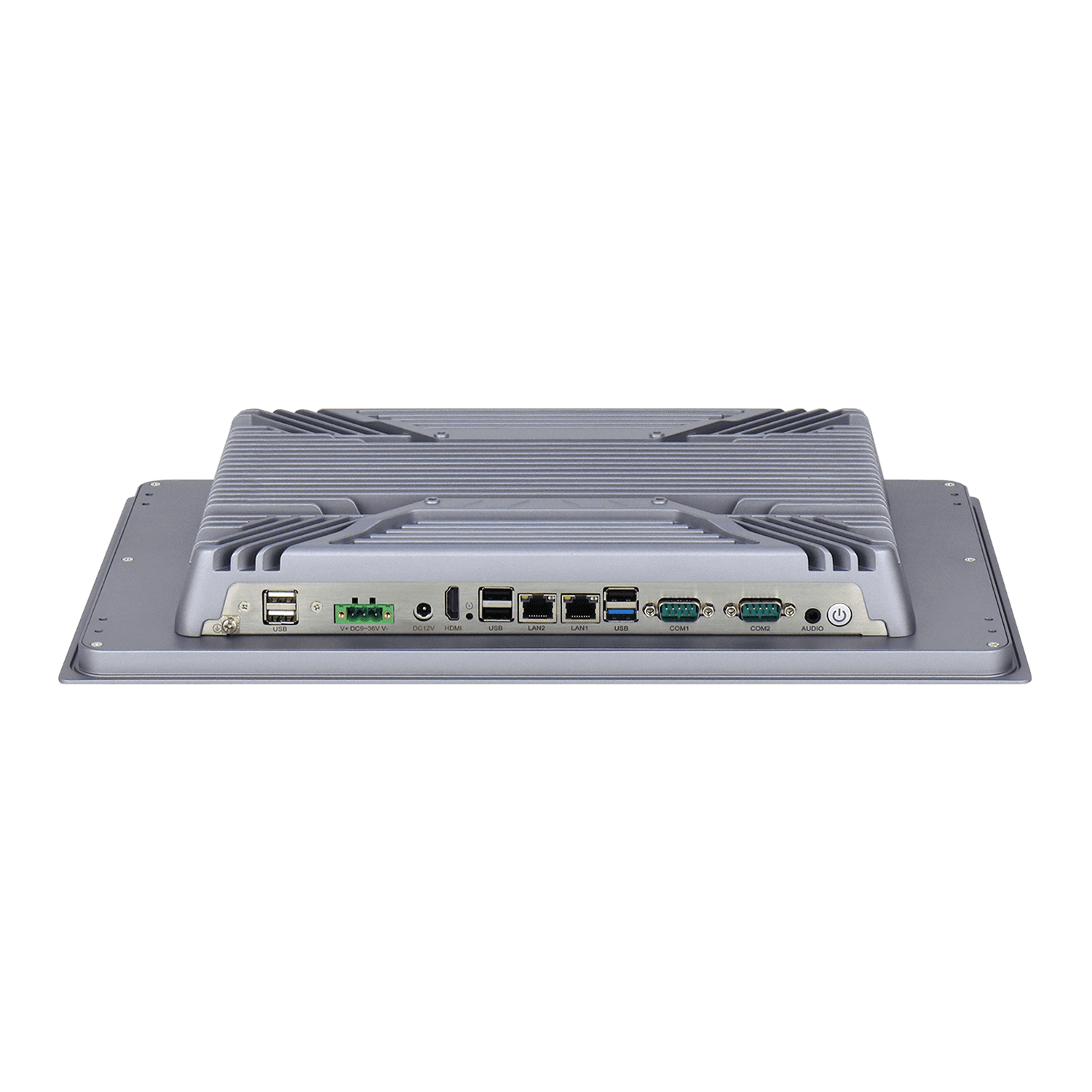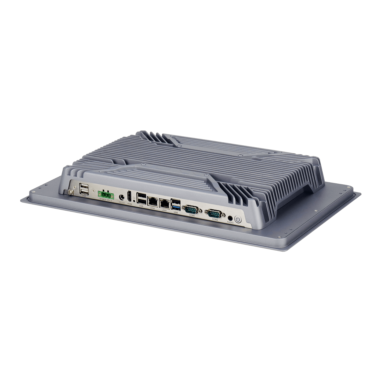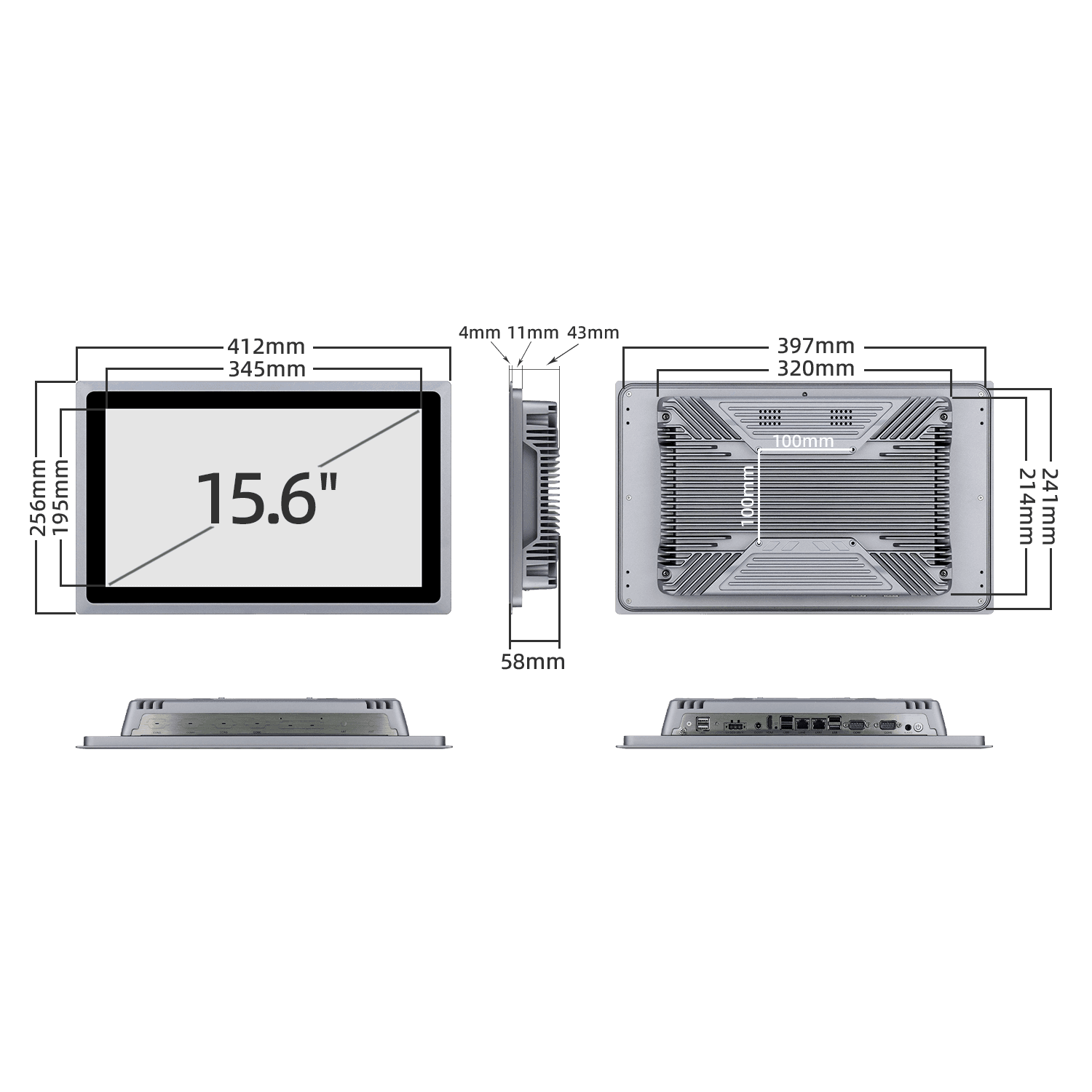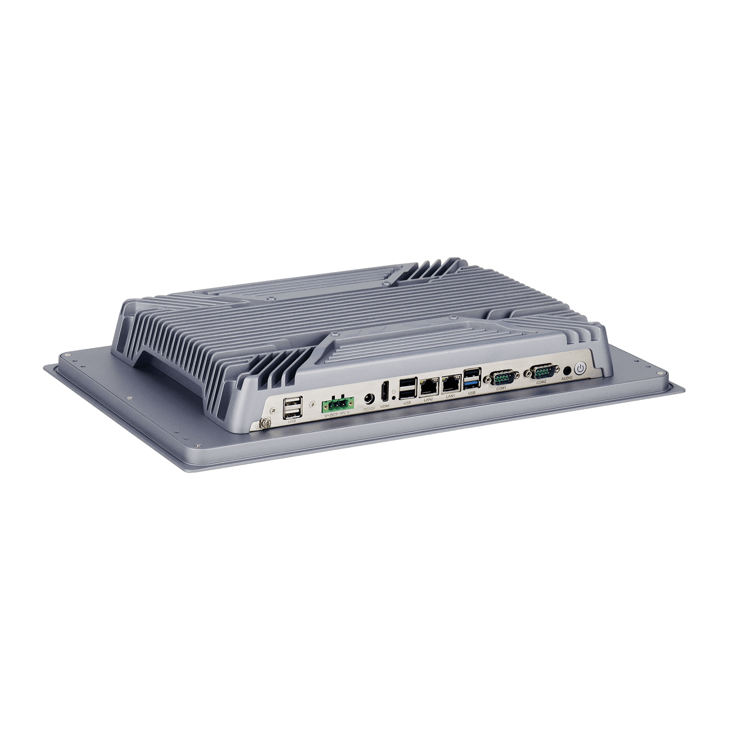 它支持宽温环境(-20°C至60°C),全封闭铝鳍无风扇的设计,保障更高效散热和强固防振性,使其成为更可靠的工业平台,提供安全接地部件更有效保护设备。屏幕15.6英寸LED背光工业屏,铝合金前面板符合IP65防水标准,可选全平面电容触摸屏或电阻触摸屏。