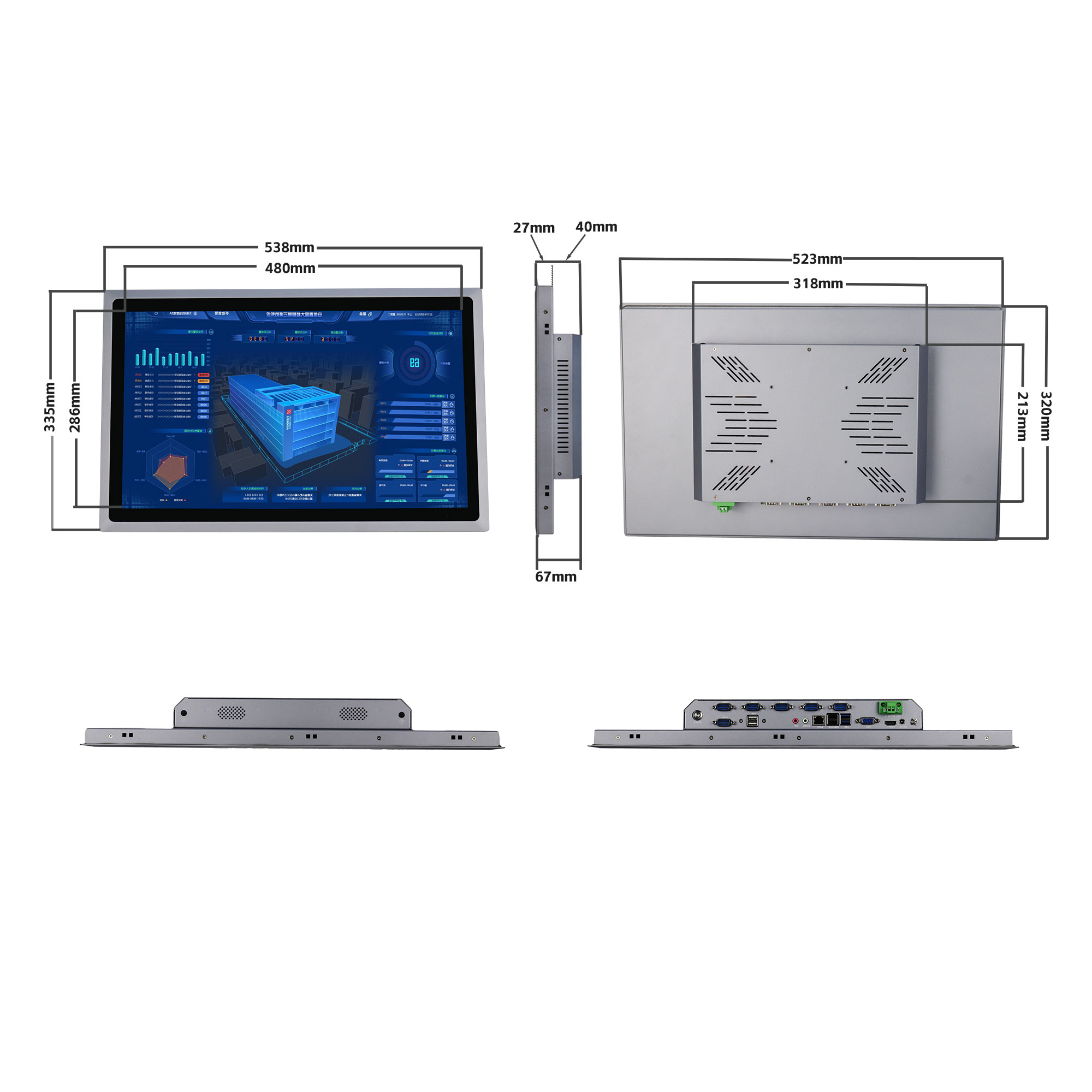 它支持宽温环境(-10至50°C),且流线型的设计,保证其高效散热和强固防震性,使其成为可靠的工业平台,提供安全接地部件更有效保护设备。屏幕21.5英寸LED背光工业屏,铝合金前面板符合IP65防水标准,可选全平面电容触摸屏或电阻触摸屏。