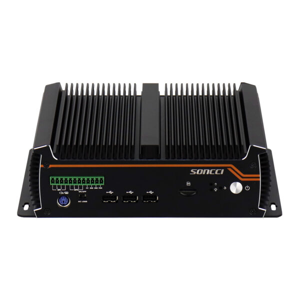 整机铝合金壳体具有强固性,铝鳍设计快速将主机热量散发,内部无线缆无风扇和全封闭的结构有效防止粉尘进入,保障主机在宽温(-10 ~ 60℃)工作环境中稳定的运行。嵌入、壁挂、桌面安装方式快速灵活安装,可适用于工业控制、交通运输、自助终端、安防机器视觉、迷你服务器、智慧城市等领域。
