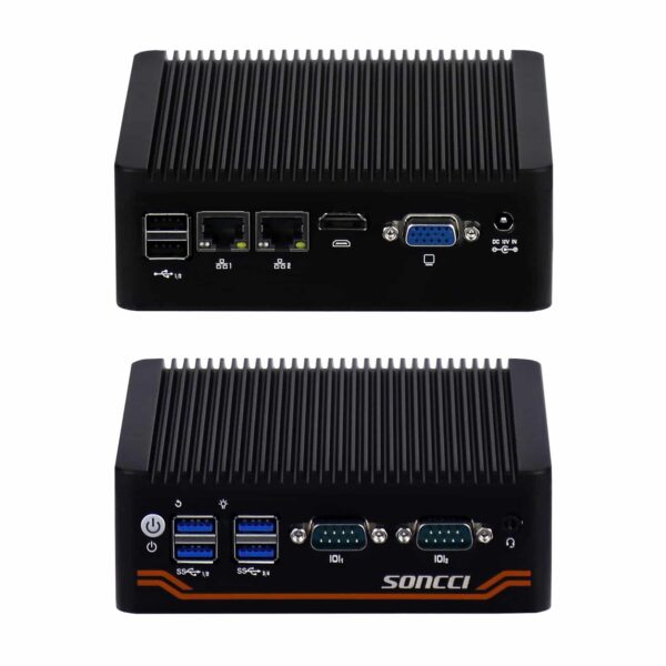 整机铝合金壳体具有强固性,铝鳍设计快速将主机热量散发,内部无线缆无风扇和全封闭的结构有效防止粉尘进入,保障主机在宽温(-10 ~ 60℃)工作环境中稳定的运行。嵌入、壁挂、桌面安装方式快速灵活安装,可适用于工业控制、软路由网安、云终端、机器视觉、迷你服务器、智慧城市等领域。